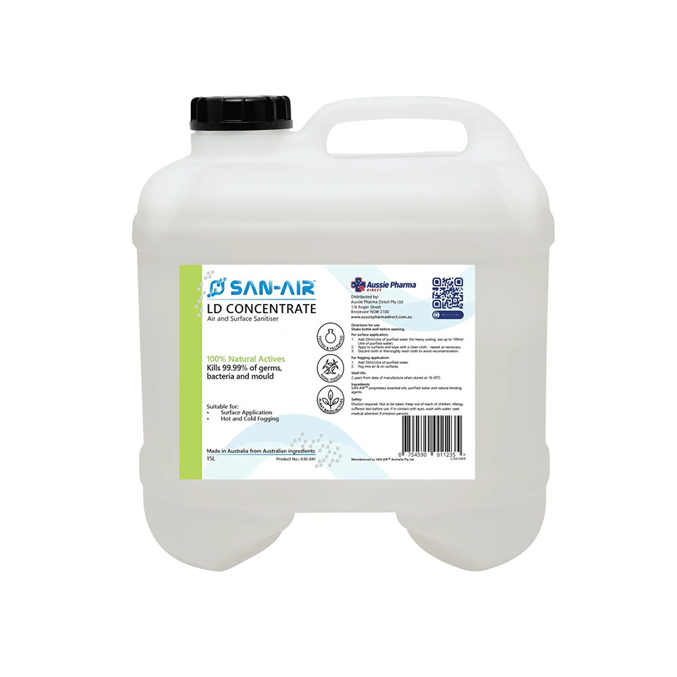 SAN-AIR™ LD Concentrate is a professional-grade, dilutable solution formulated to control mould, bacteria, and odours in indoor environments.